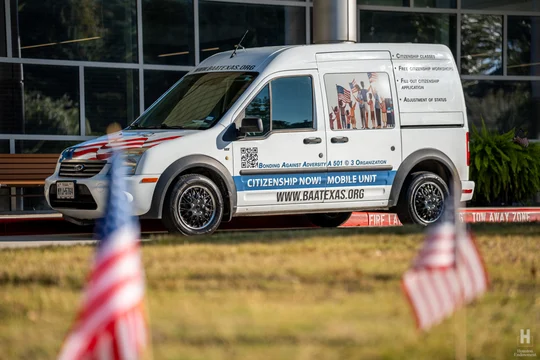 In an effort to reach underserved communities that have high numbers of eligible-to-naturalize individuals, grantee Bonding Against Adversity (BAA)(opens in new window) is taking to the streets. The Citizenship Now! mobile unit is part of a collaborative effort that aims to reach 70,000 lawful permanent residents who could benefit from citizenship preparation and filing services. The mobile unit will bring information on citizenship resources and civic engagement events to areas such as North Houston, Liberty County, and Katy.